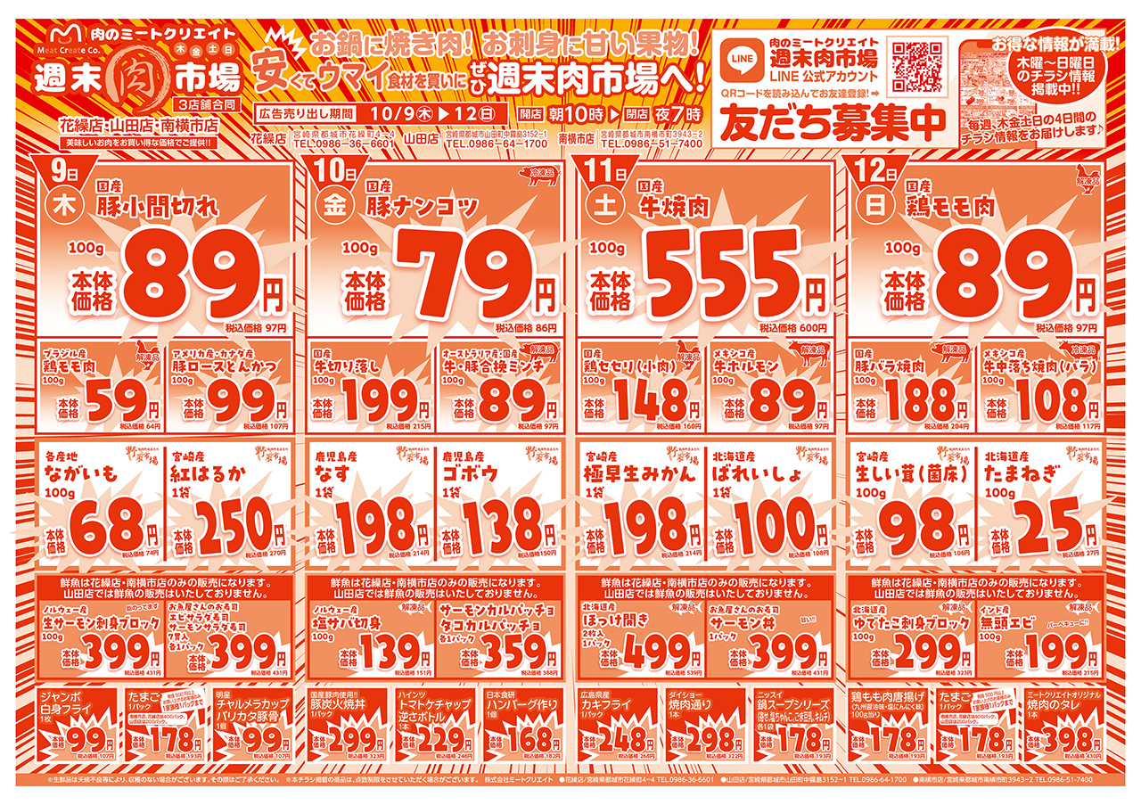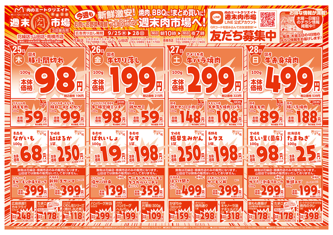 店 名 | 肉のミートクリエイト 週末肉市場 | ![]() 肉のミートクリエイト 週末肉市場のFacebookはこちら! |