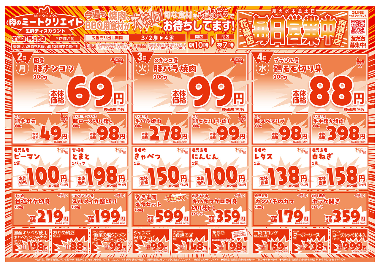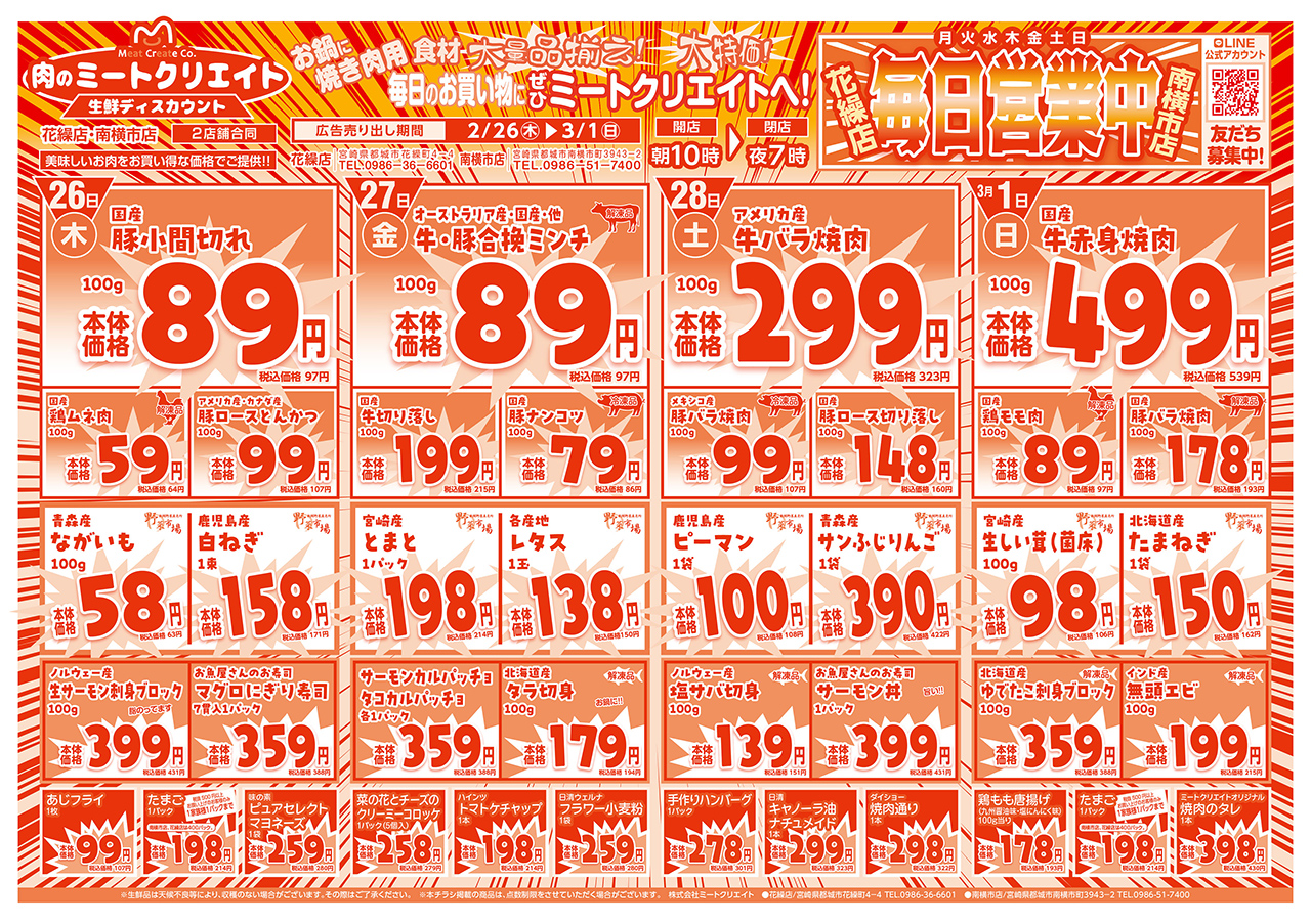 | 電 話 | (花繰店)0986-36-6601 (南横市店)0986-51-7400 |